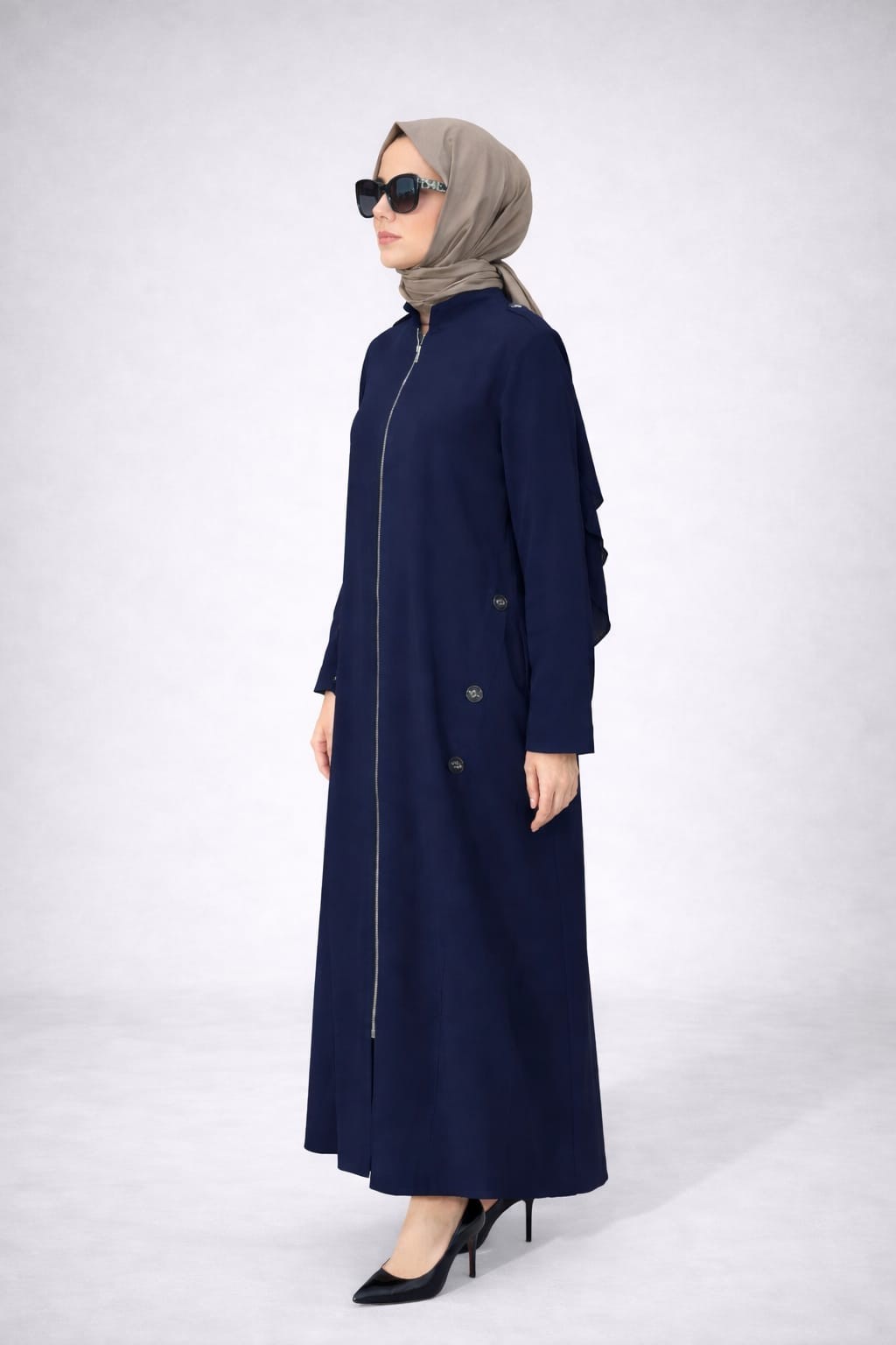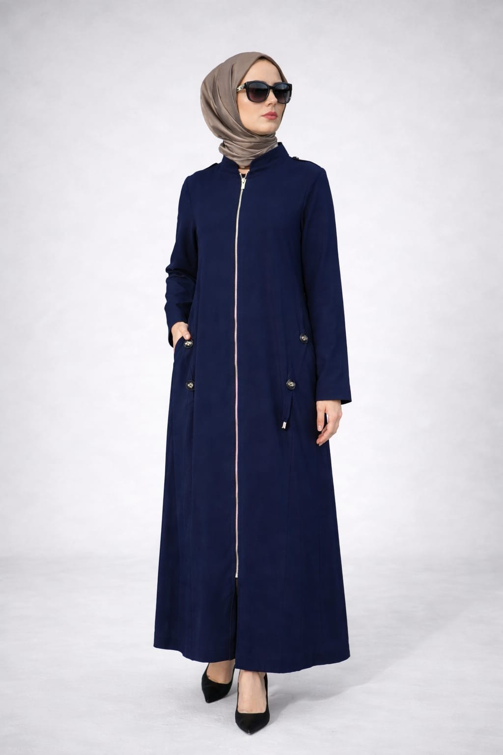 Hakim Yaka Takma Kol Cepli Tam Boy Fermuarlı Rahat Kalıp