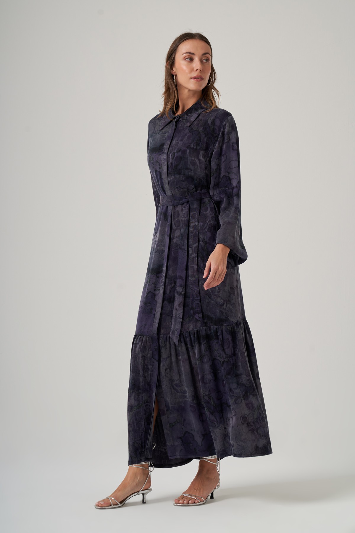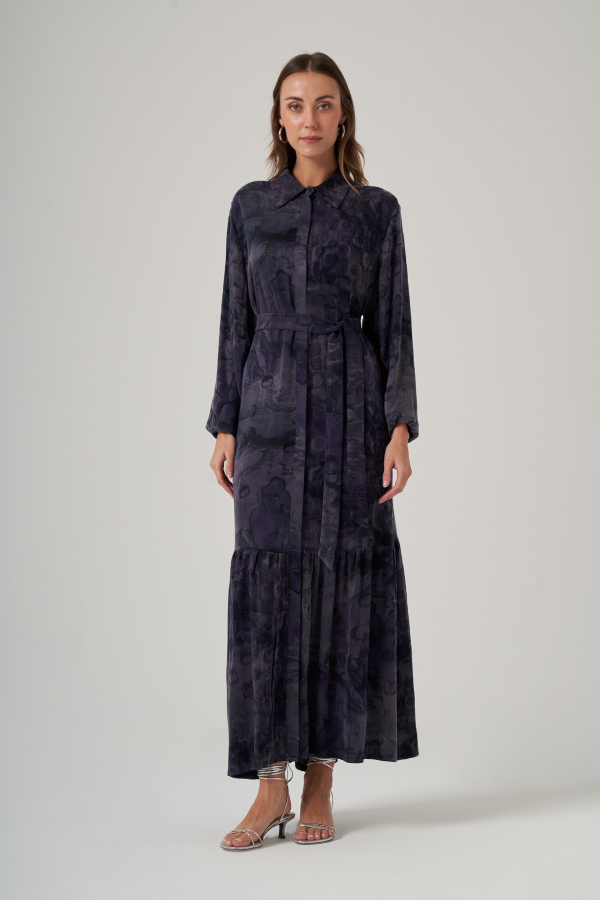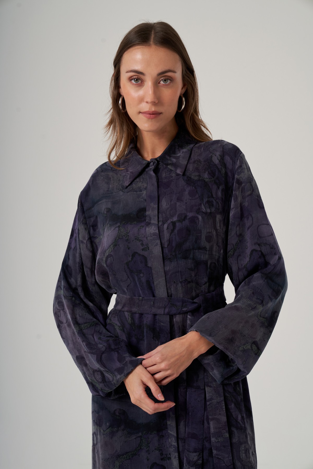Nuss 2038 İpek Qupra Ebruli Desen Elbise