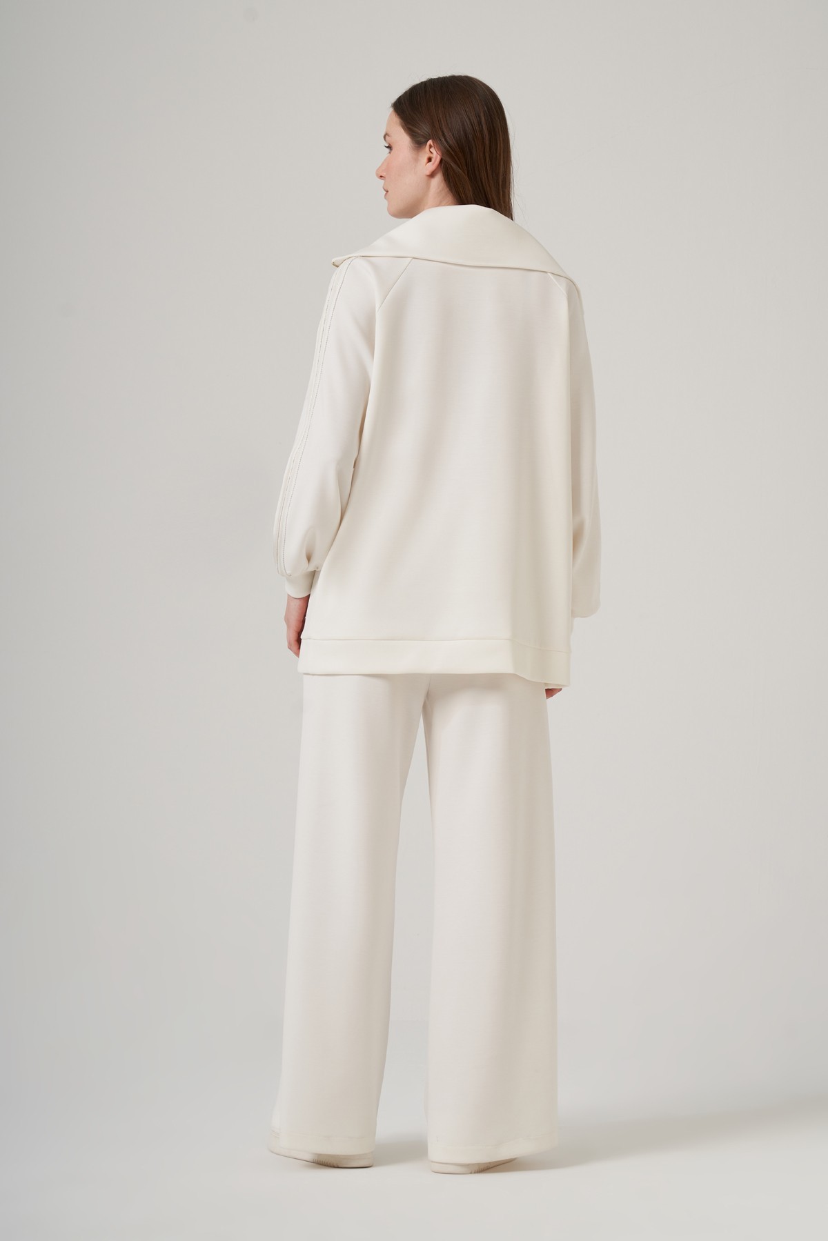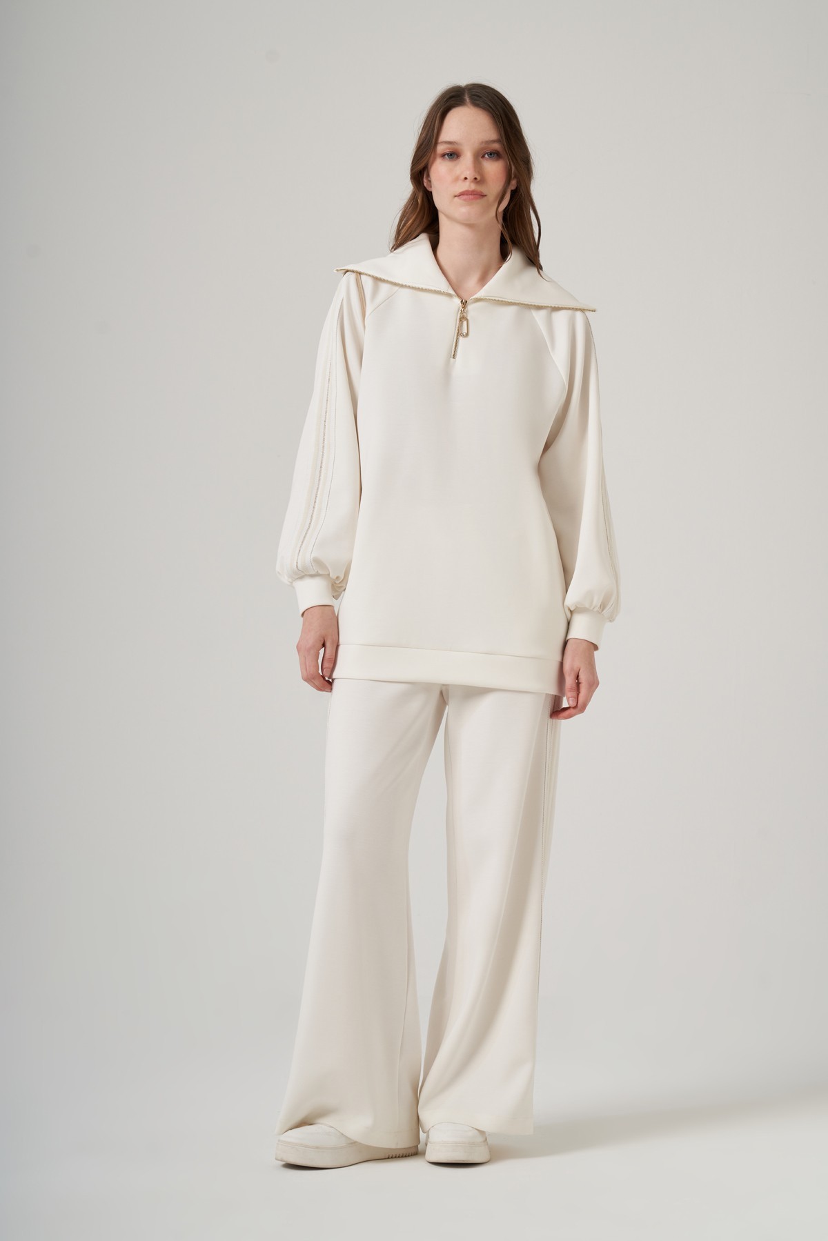 Tunik Dik Yaka Fermuarlı Reglan Kol Rahat Kalıp