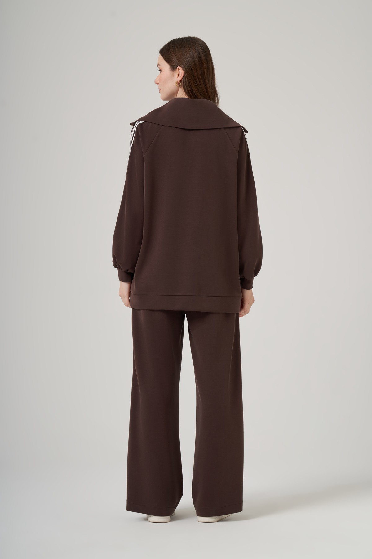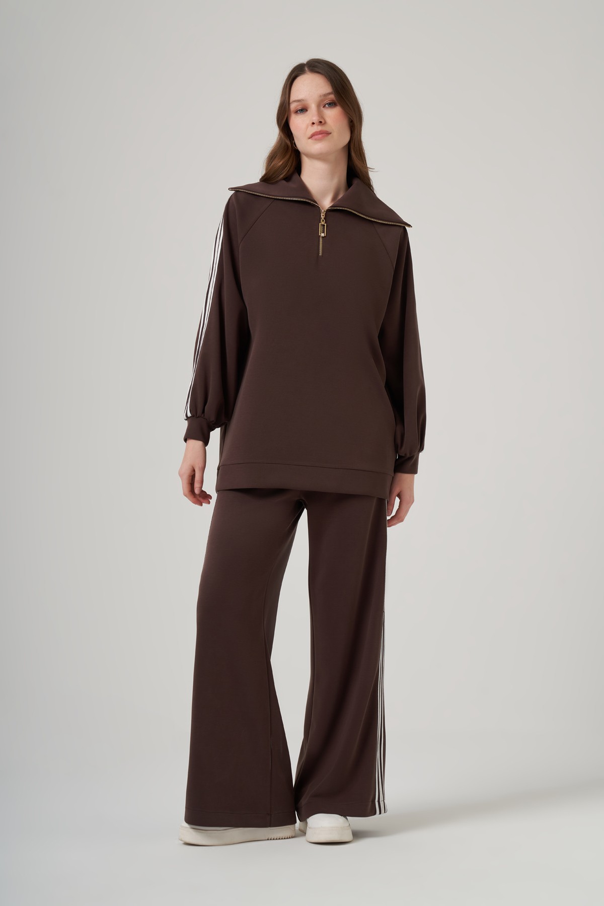 Tunik Dik Yaka Fermuarlı Reglan Kol Rahat Kalıp