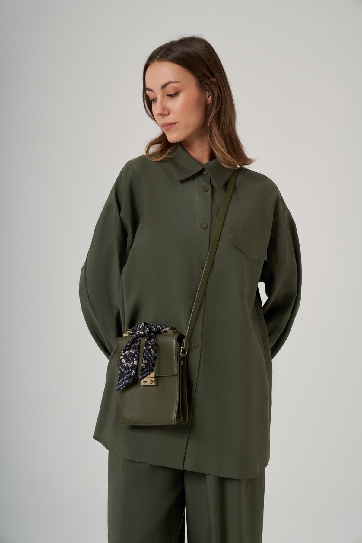 Tunik Dik Yaka Fermuarlı Reglan Kol Rahat Kalıp
