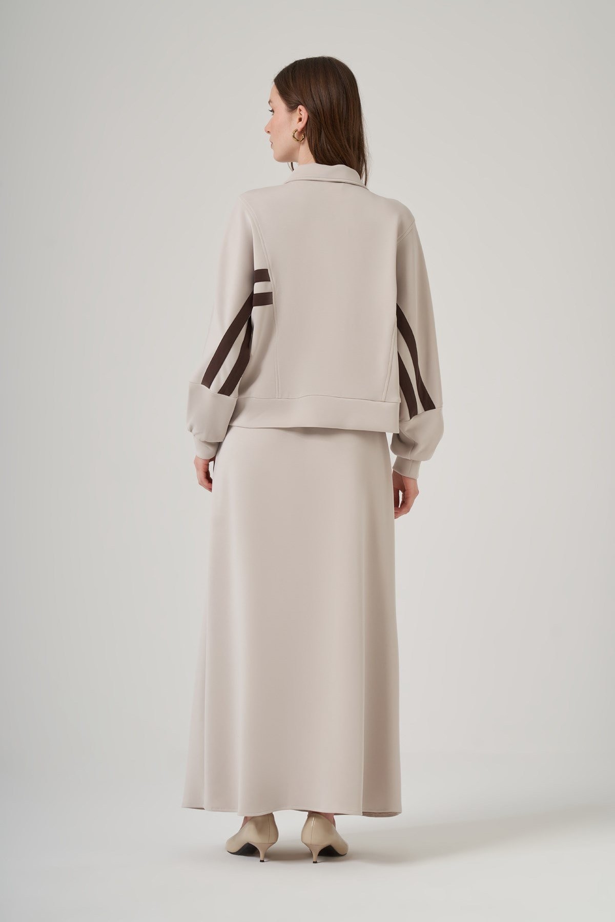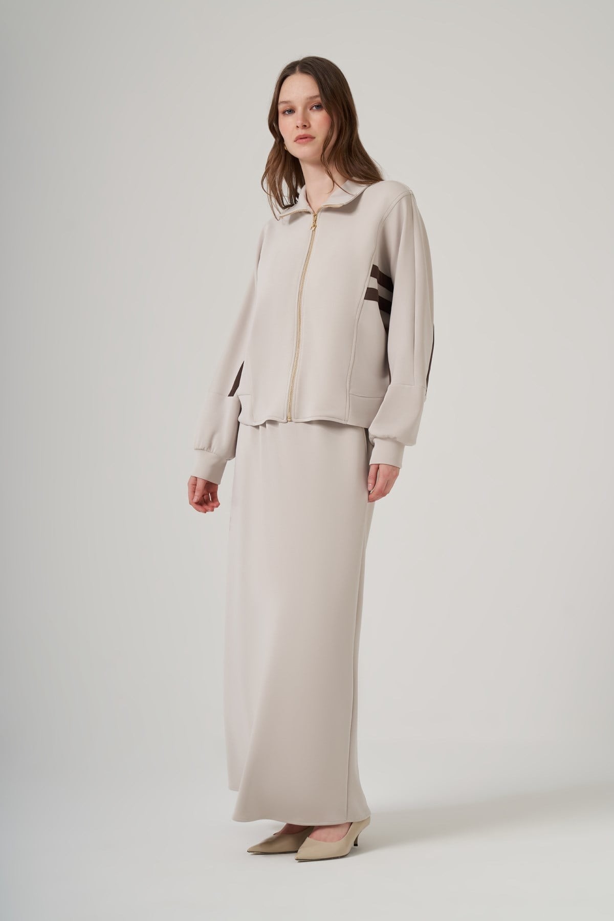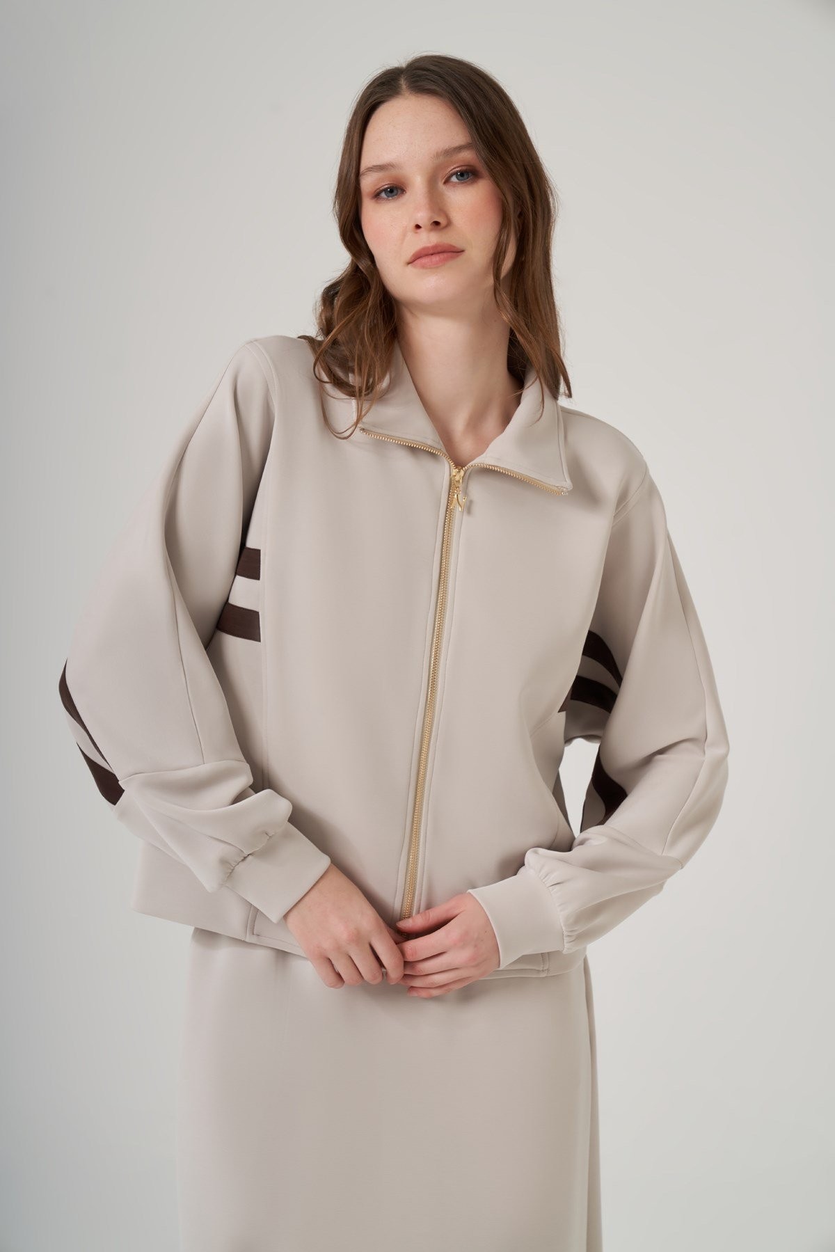 Kap Dik Yaka Yarasa Kol Önden Fermuarlı Rahat Kalıp