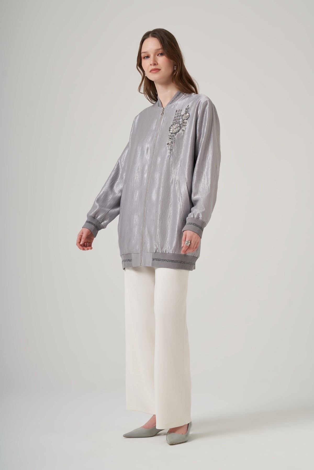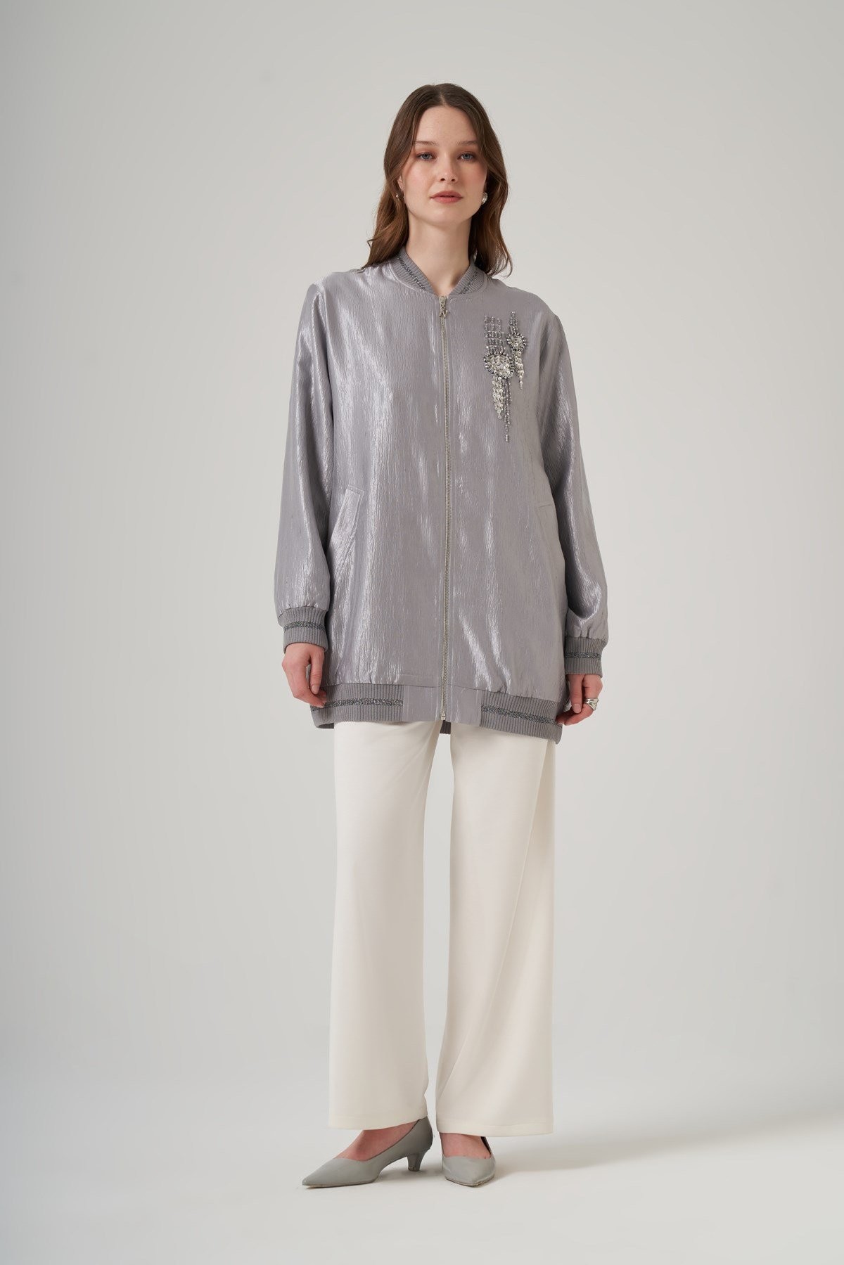 Kap Yakalı Takma Kol Fermuarlı Rahat Kalıptır