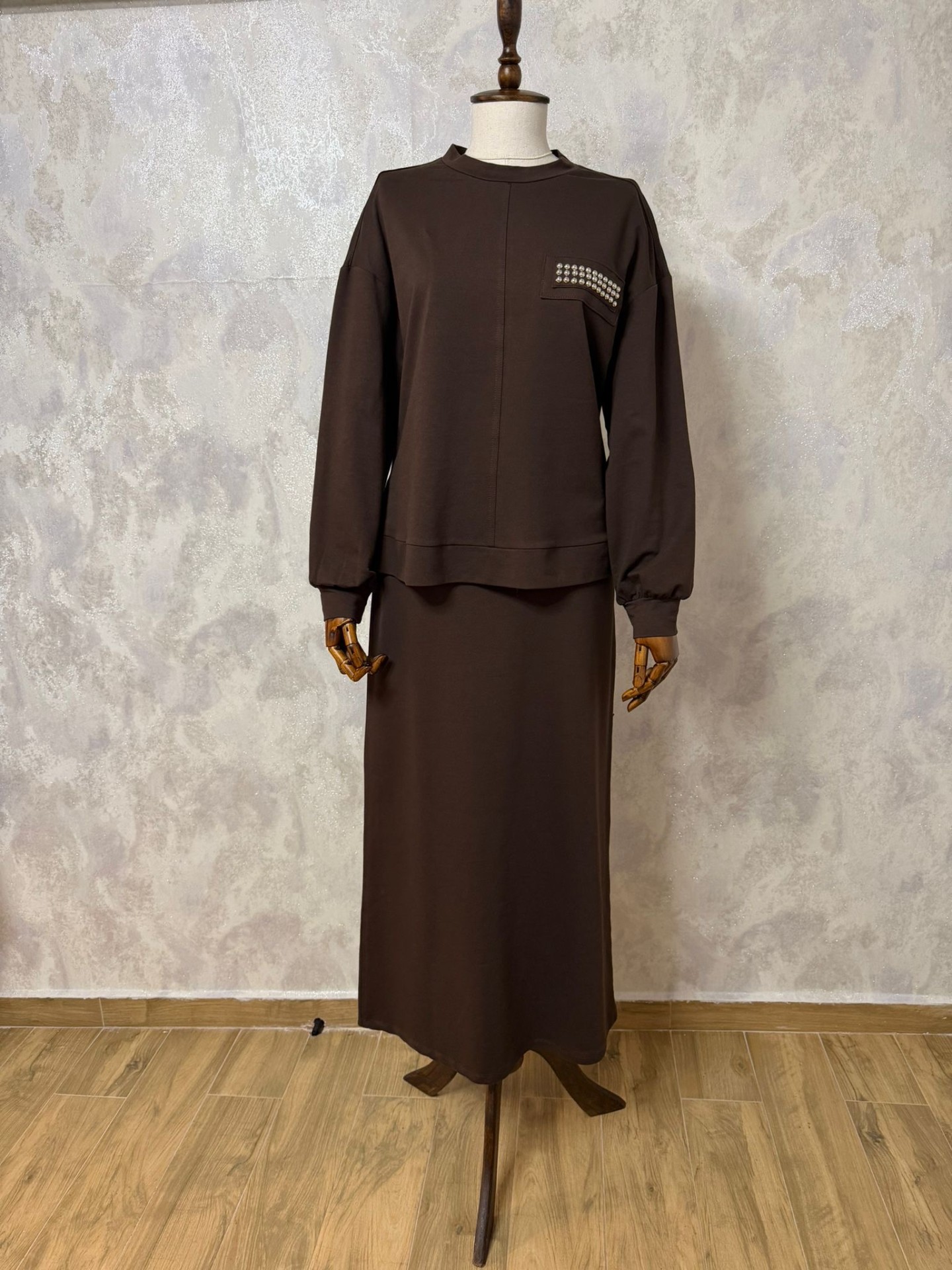 Nurcan Çetin 26492 Zımba Detaylı Color Mix Tunik Etek Takım