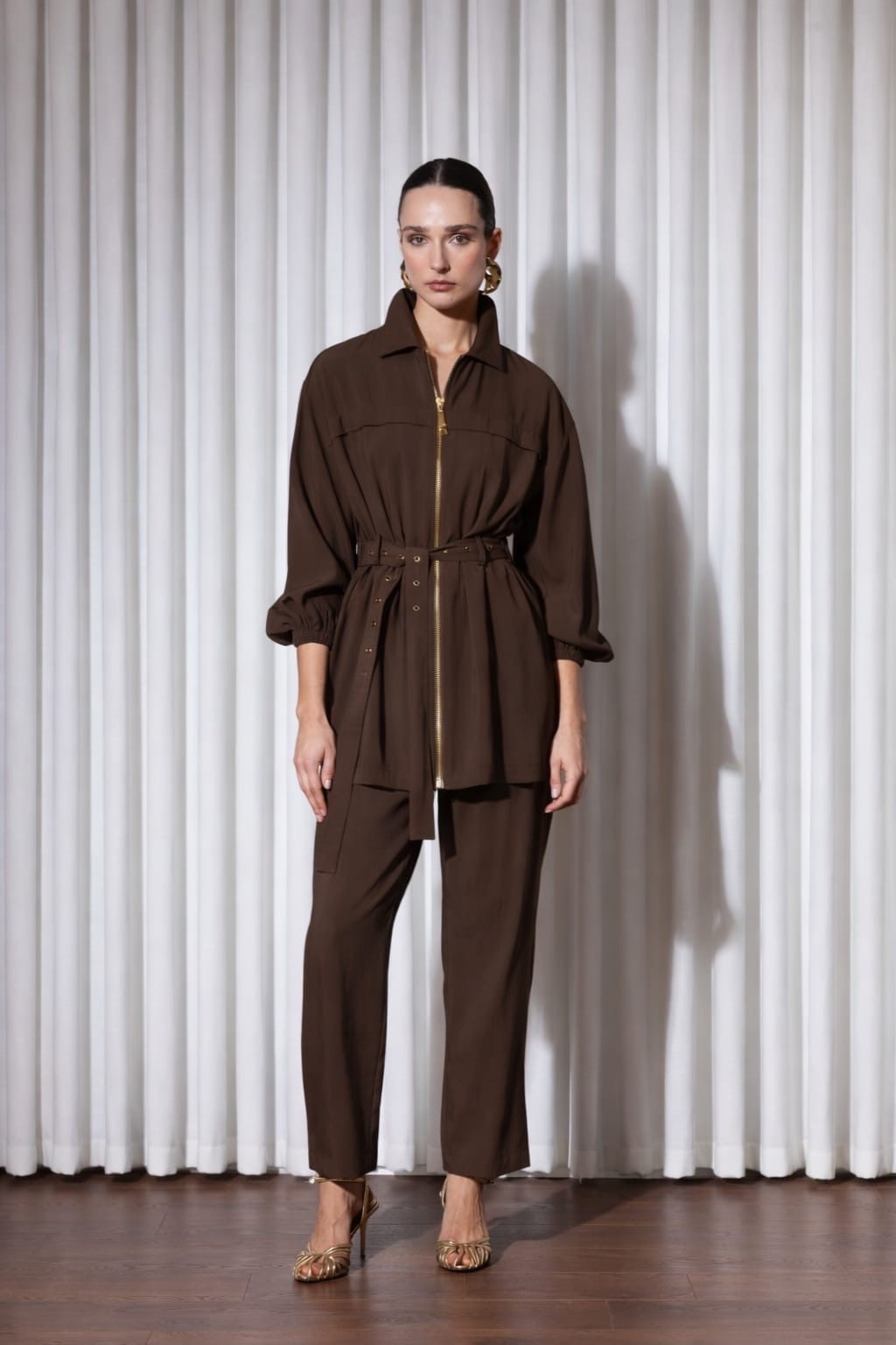 Pantolon Beli Lastikli Önden Fermuarlı İnce Kemerli Cepli Bol Kesimdir