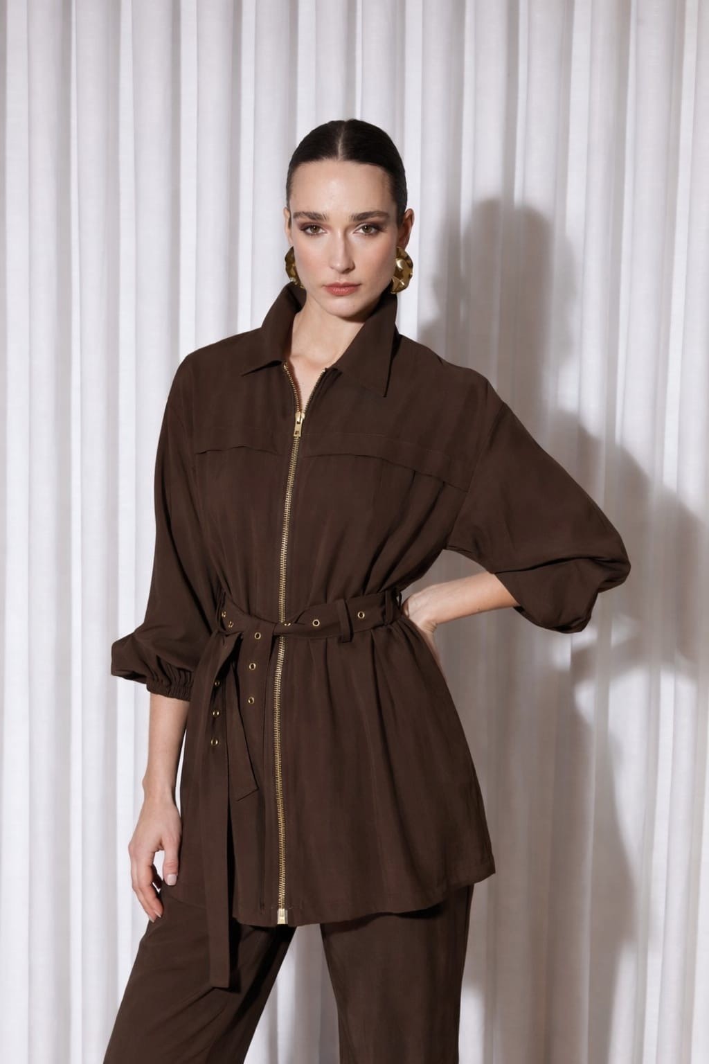 Tunik Dik Yaka Yarasa Kol arkadan Yarım Fermuarlı Rahat Kalıp