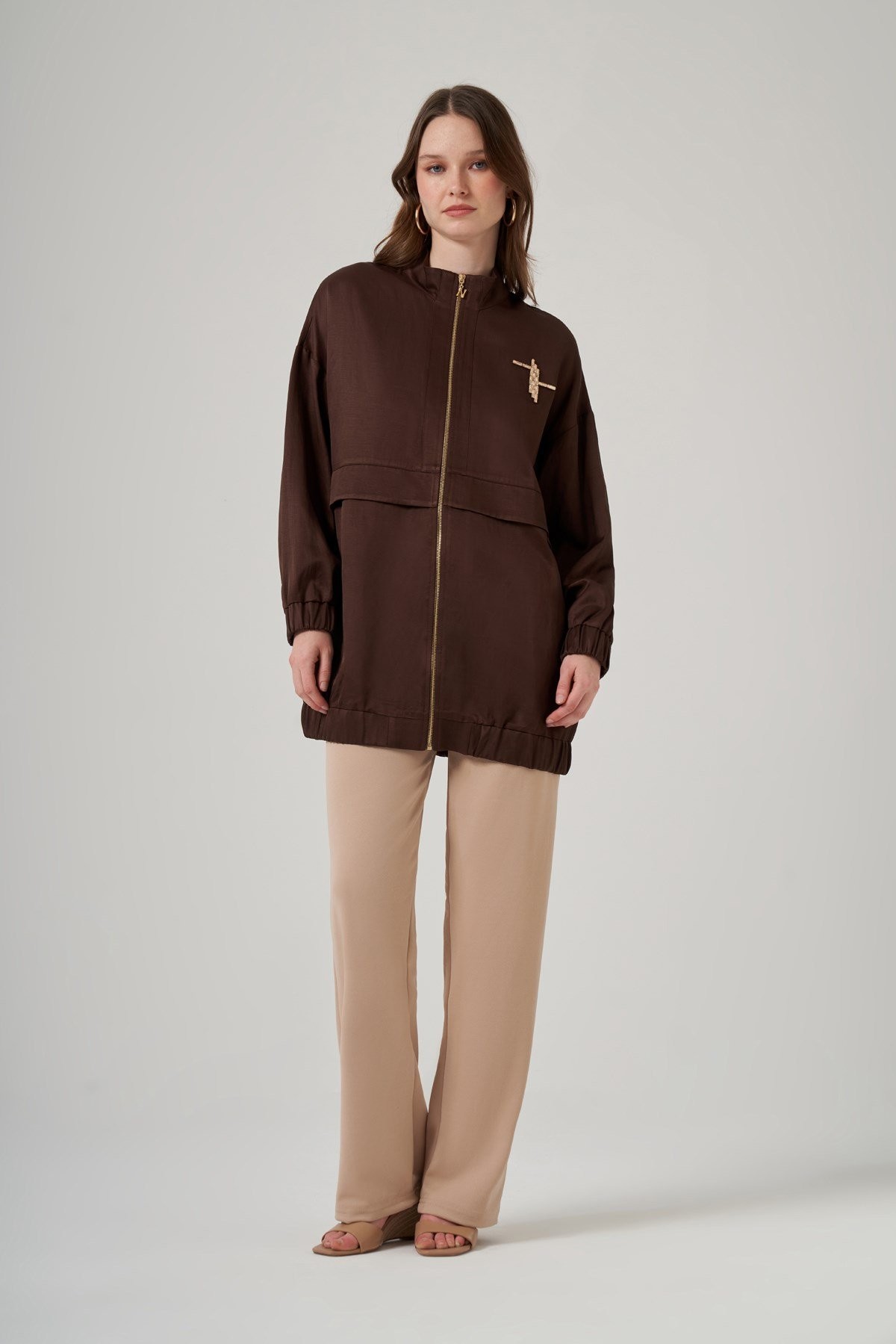 Kap Yakalı Takma Kol Fermuarlı Rahat Kalıptır