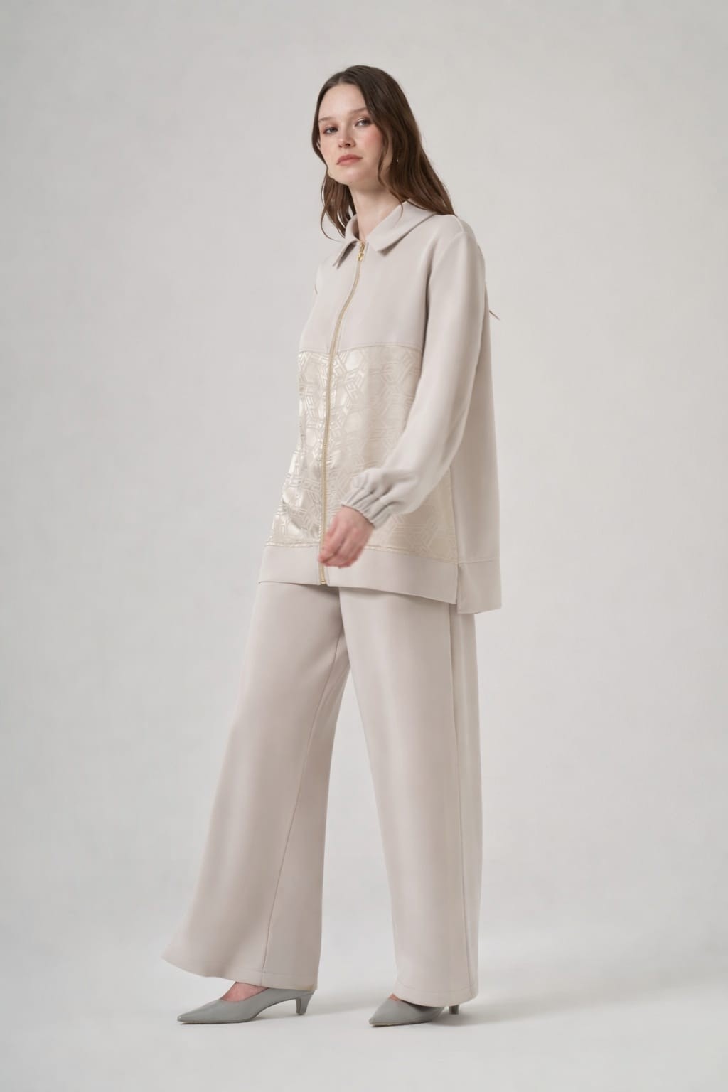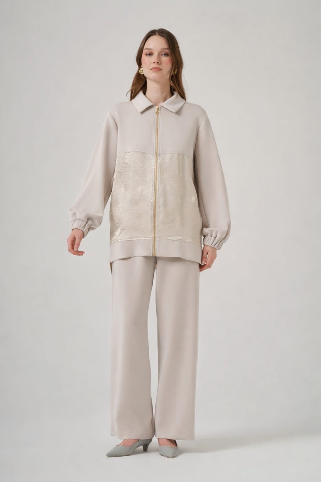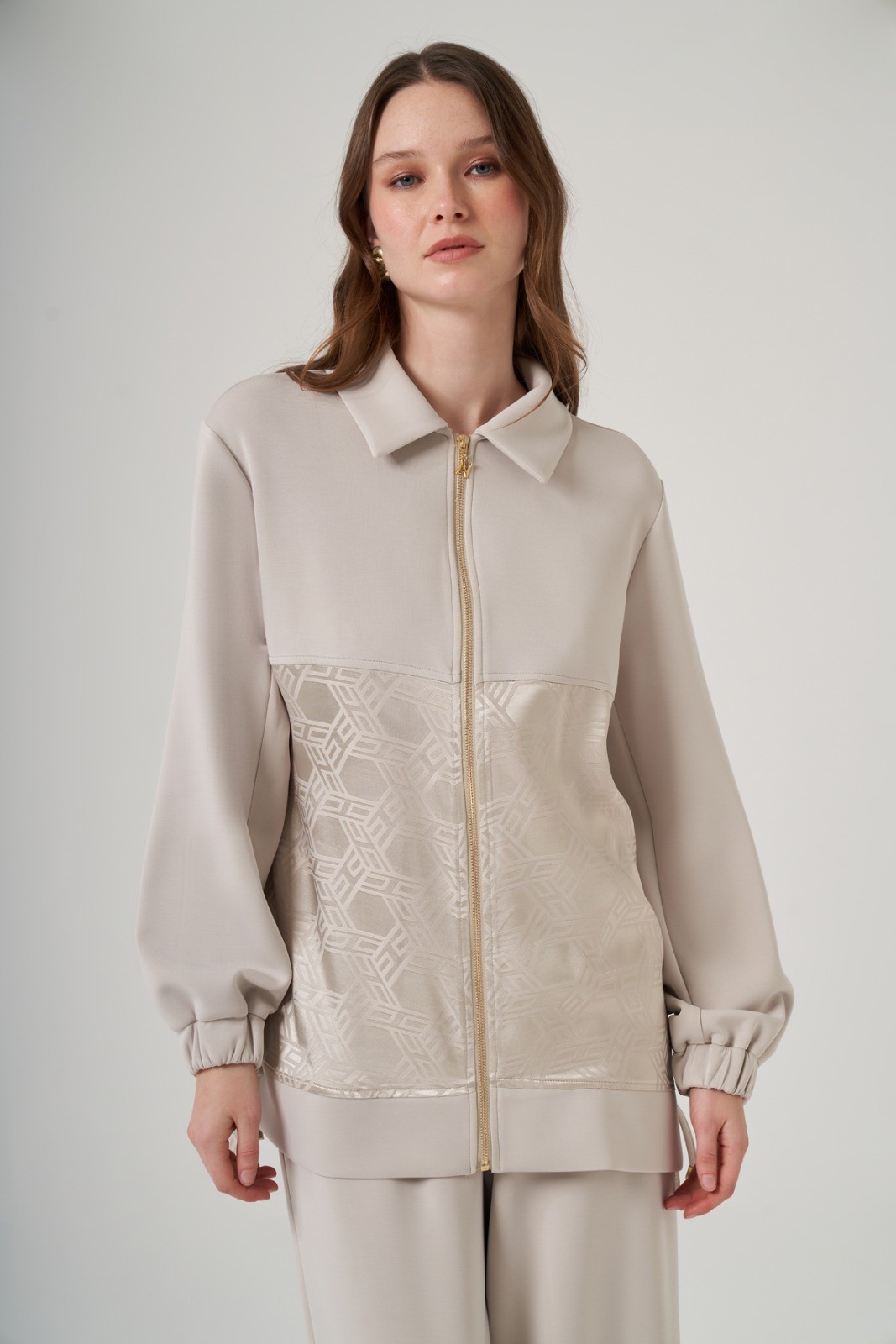 Kap Dik Yaka Düşük Kol Önden Fermuarlı Rahat Kalıp