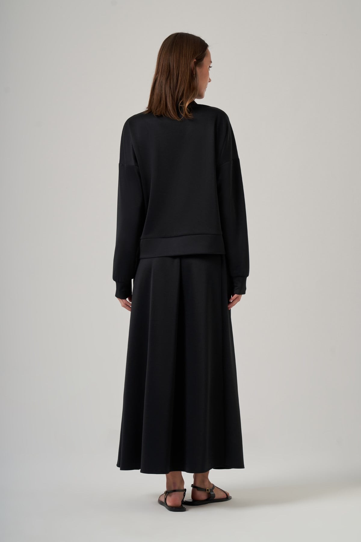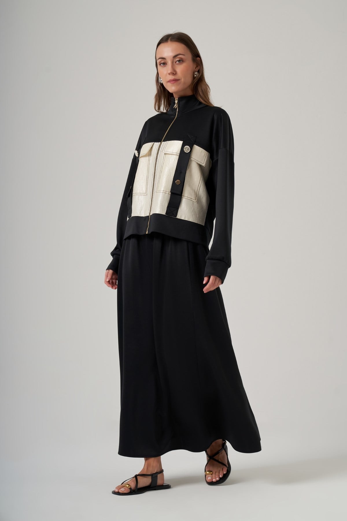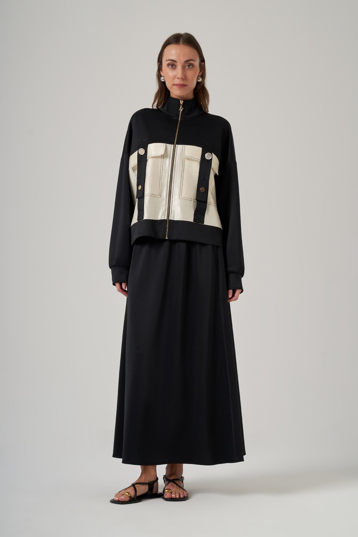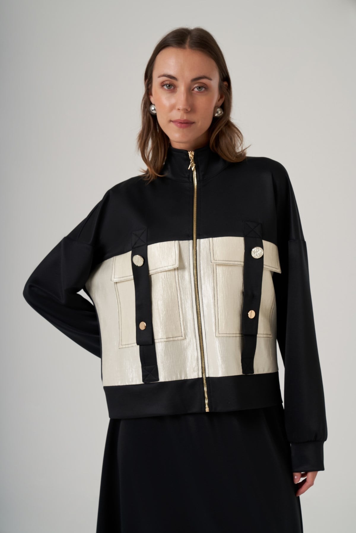 Kap Dik Yaka Yarasa Kol Önden Fermuarlı Rahat Kalıp