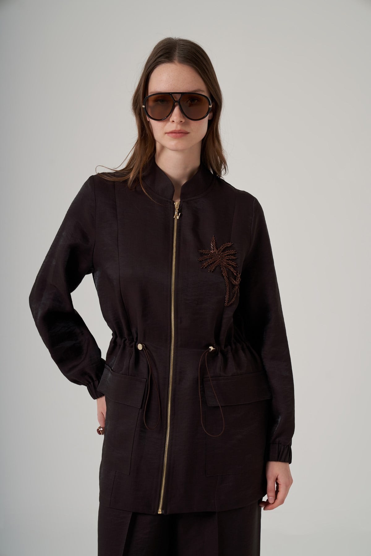 Kap Gömlek Yaka Takma Kol Önden Fermurlı Bel Büzgülü Rahat Kalıp