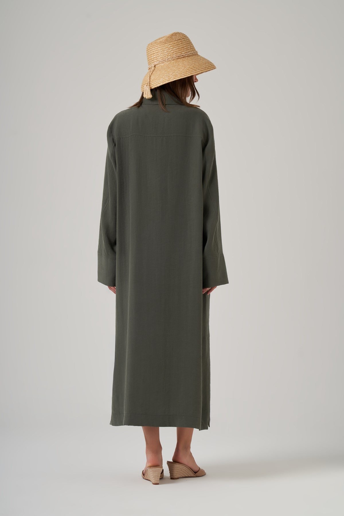 Dik Yaka Düşük Kol Önden Fermuarlı Cepli Rahat Kalıp