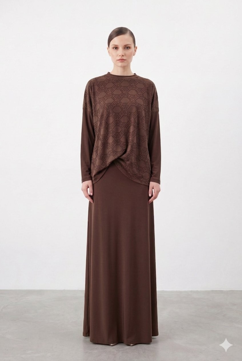 Nuss 1058 Bluzu Büzgü Detay Etekli Takım
