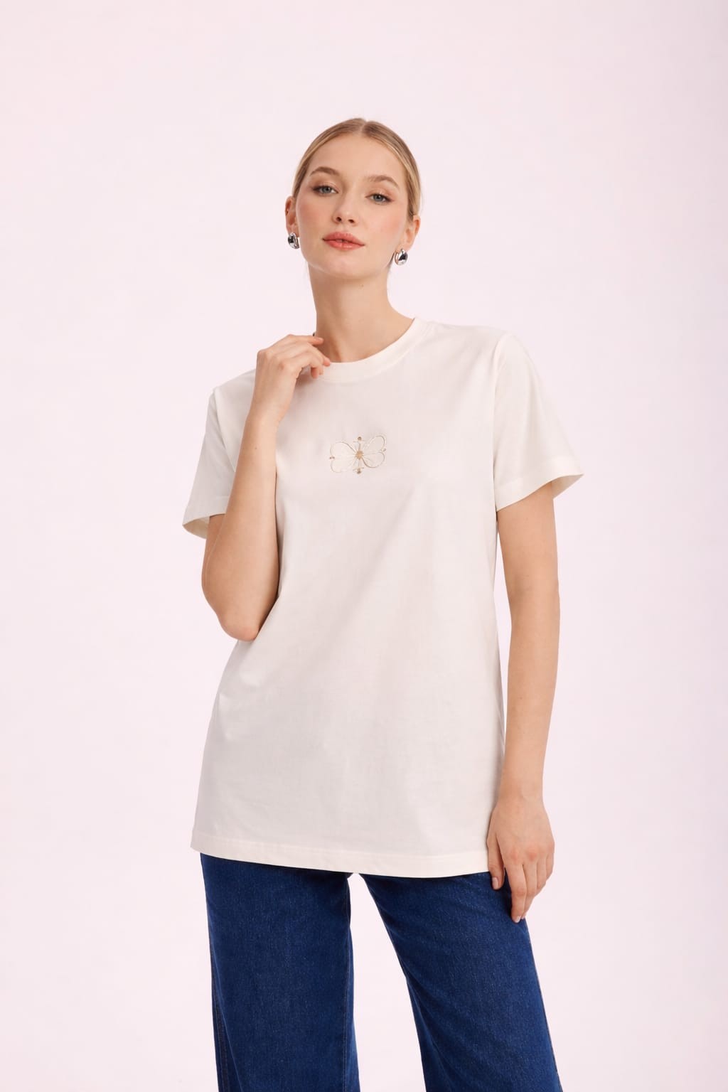Sıfır Ribana Yaka Takma Kısa Kol Rahat Kalıp