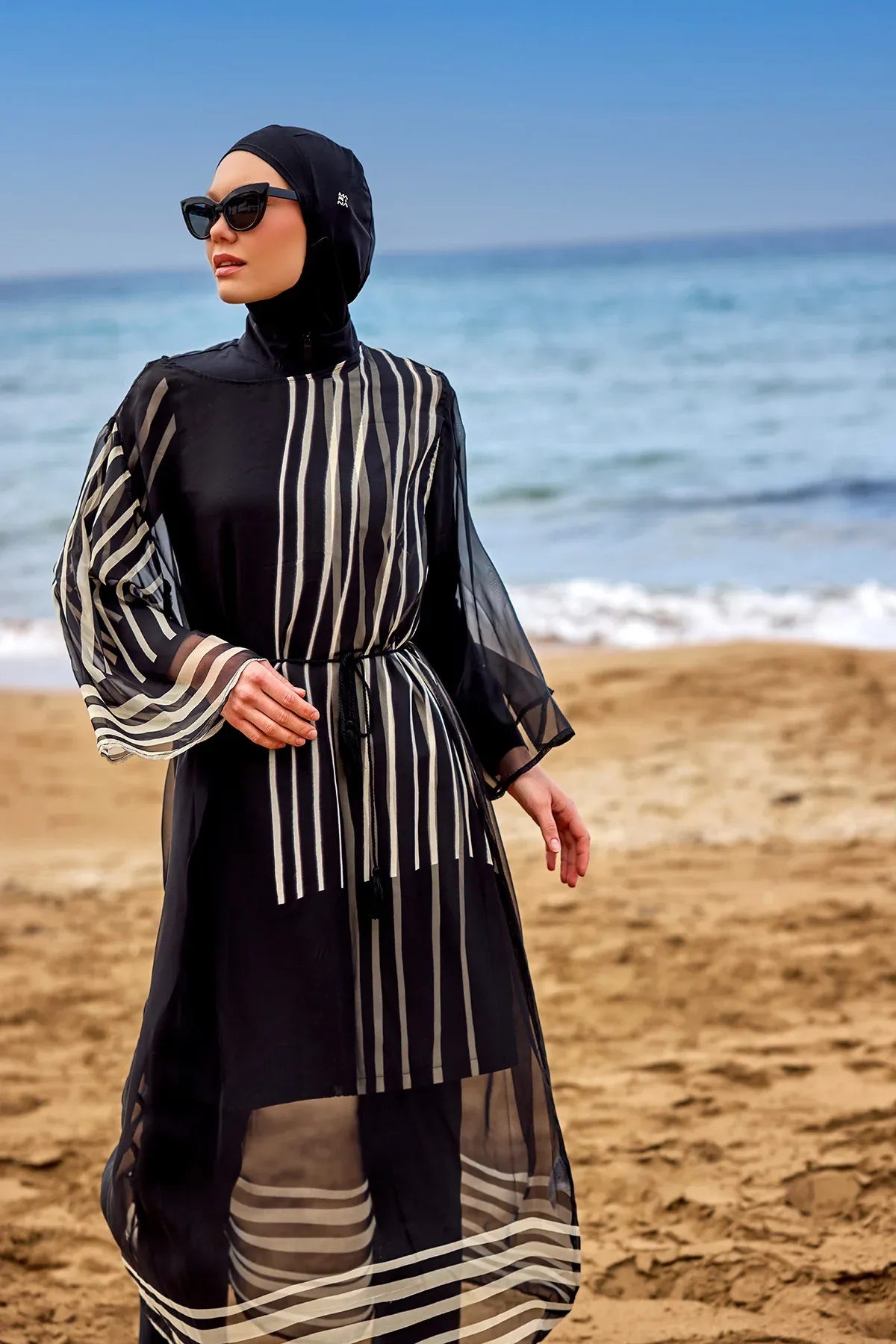 Desen: Siyah zemin üzerinde çizgi detaylı