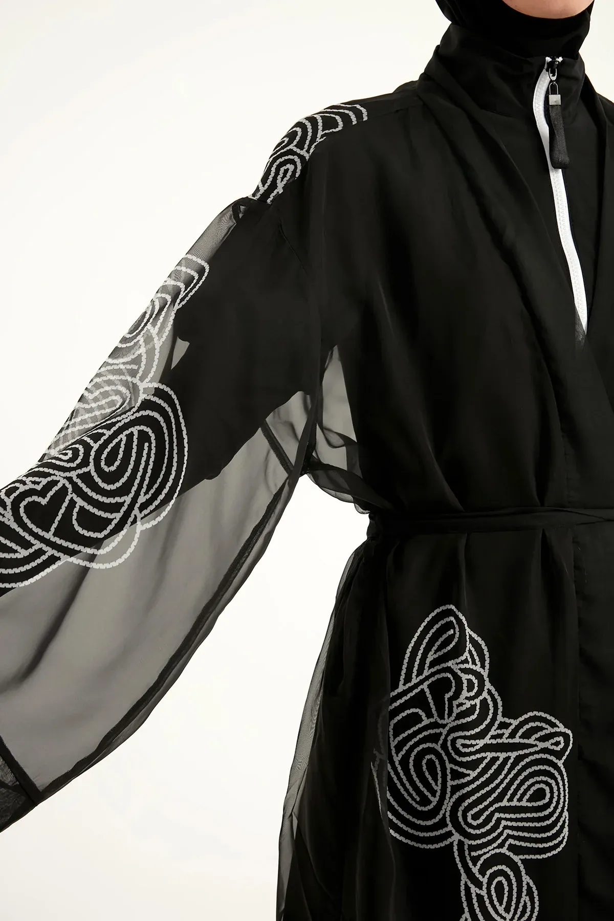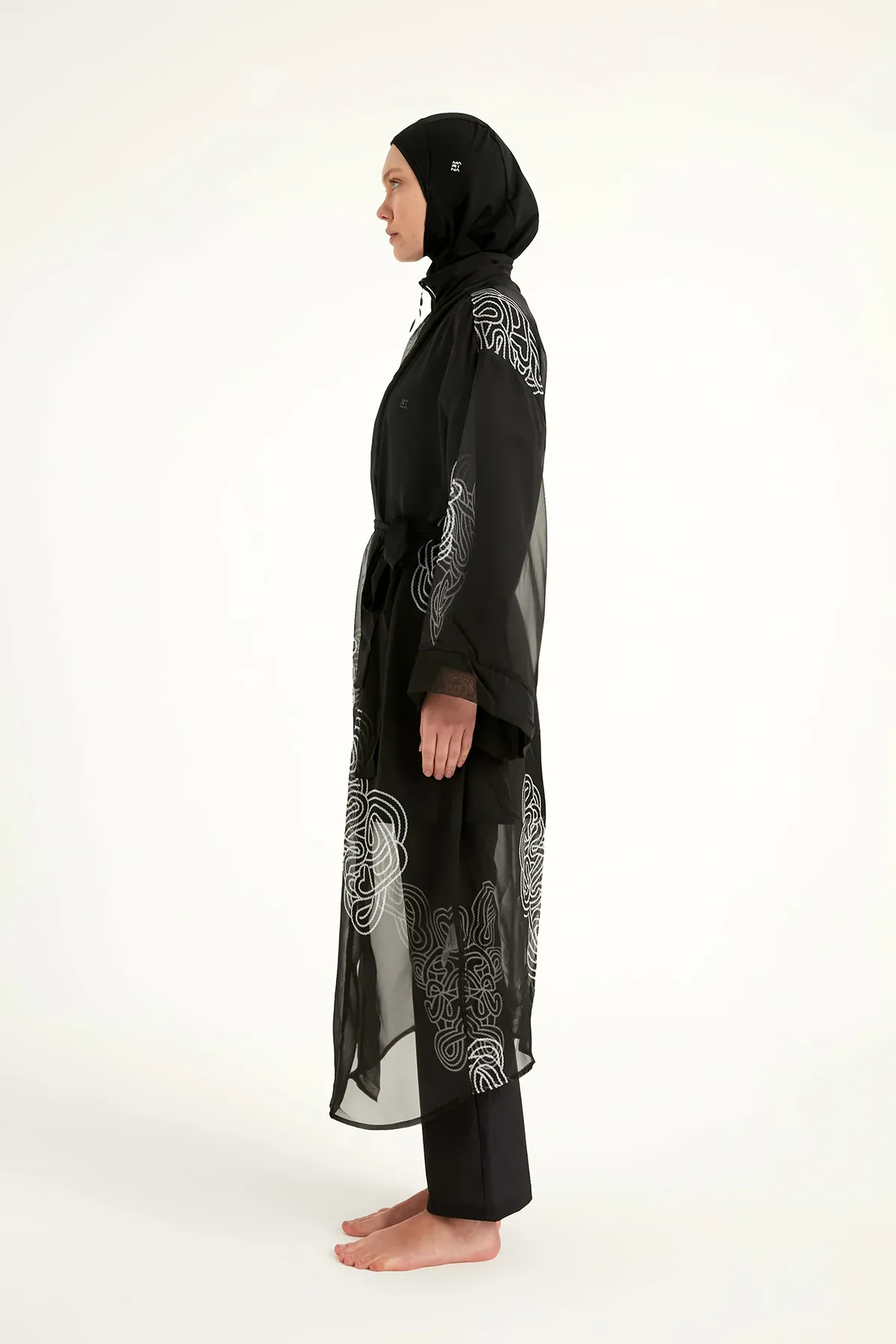 Desen: Beyaz damask desenli, siyah zemin üzerinde