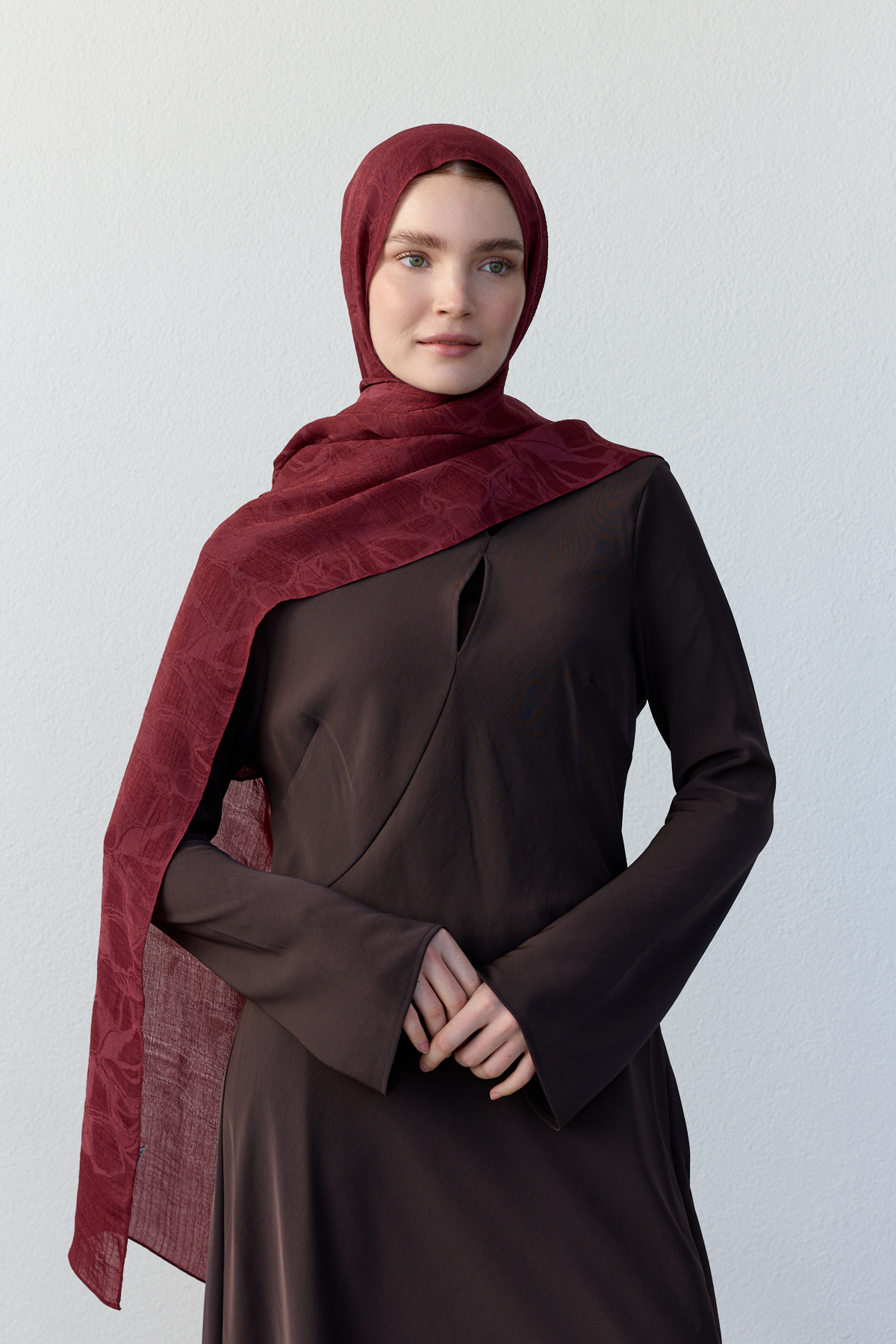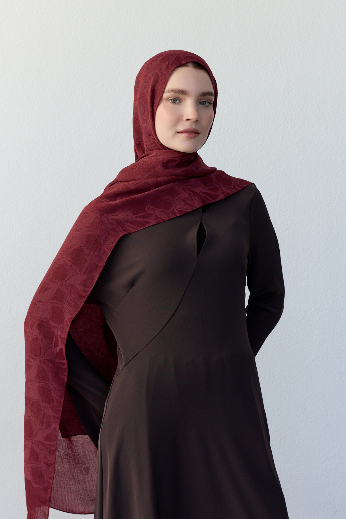 • Jakarlı dokuma detayı, şala doğal bir hareket ve şık bir görünüm kazandırır.