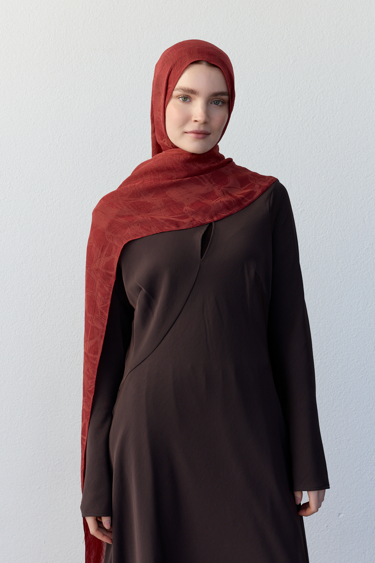• Jakarlı dokuma detayı, şala doğal bir hareket ve şık bir görünüm kazandırır.