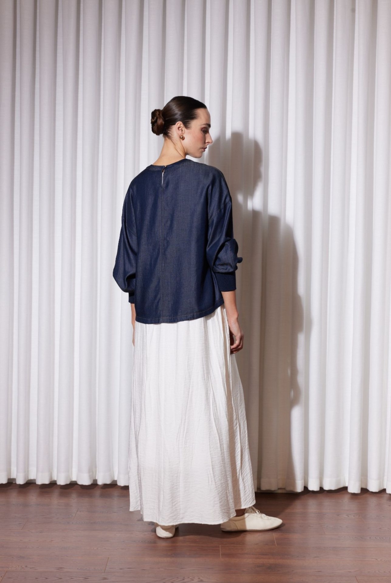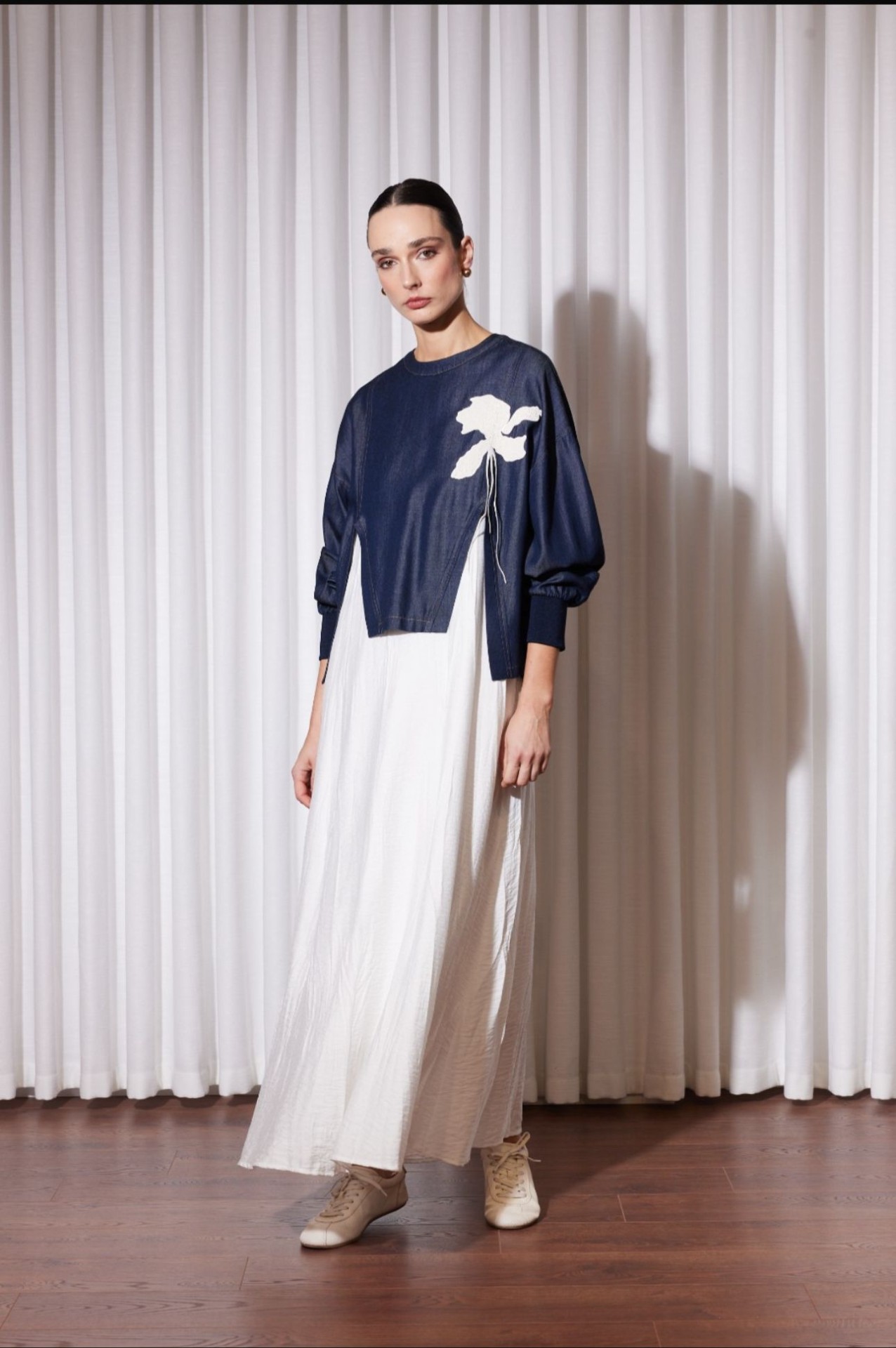 Tunik Dik Yaka Yarasa Kol arkadan Yarım Fermuarlı Rahat Kalıp