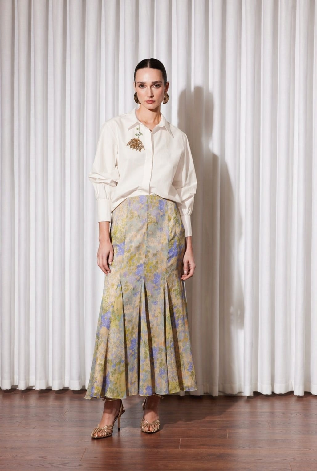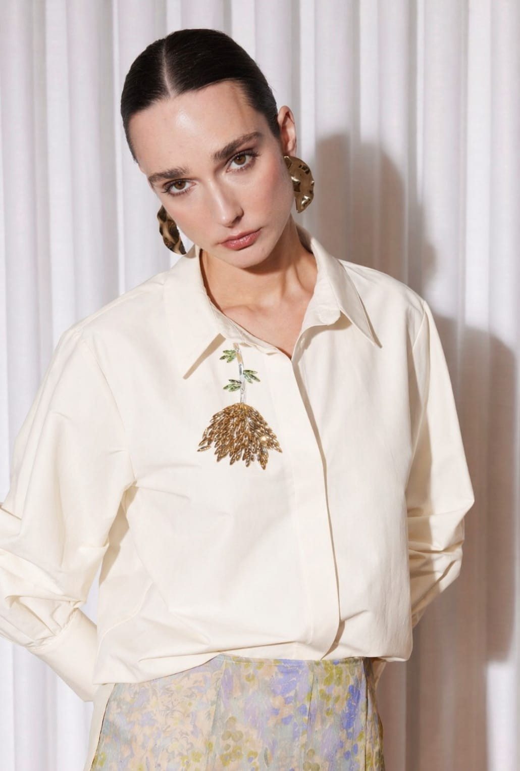 Gömlek Yaka Takma Kol Önde Gizli Düğmeli Lale Taş İşlemeli Rahat Kalıp