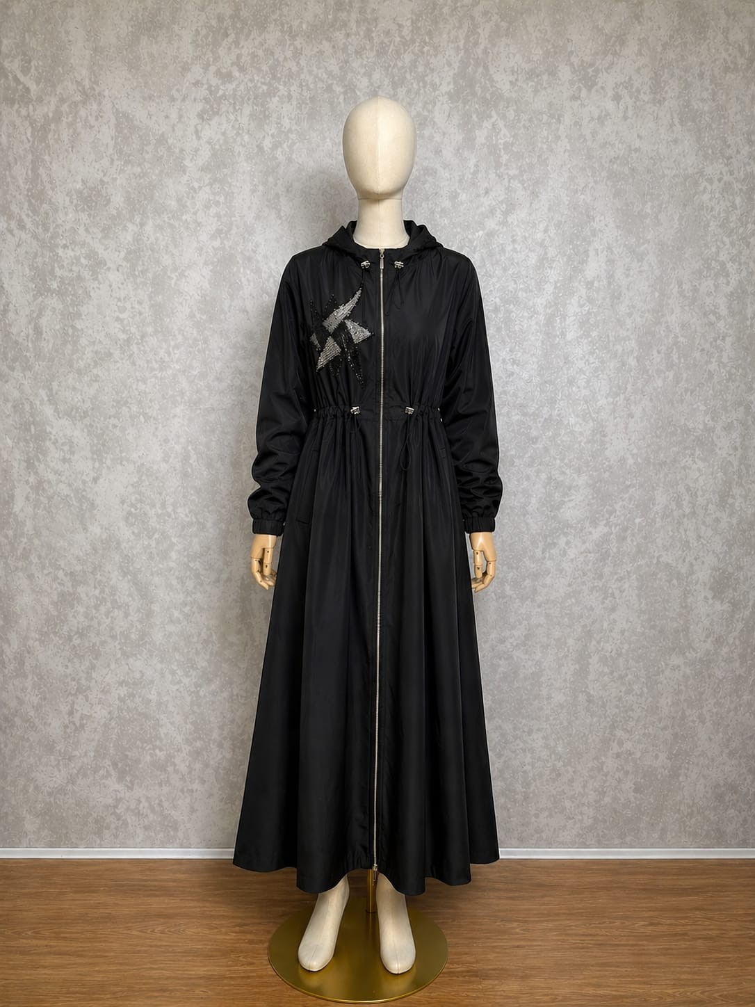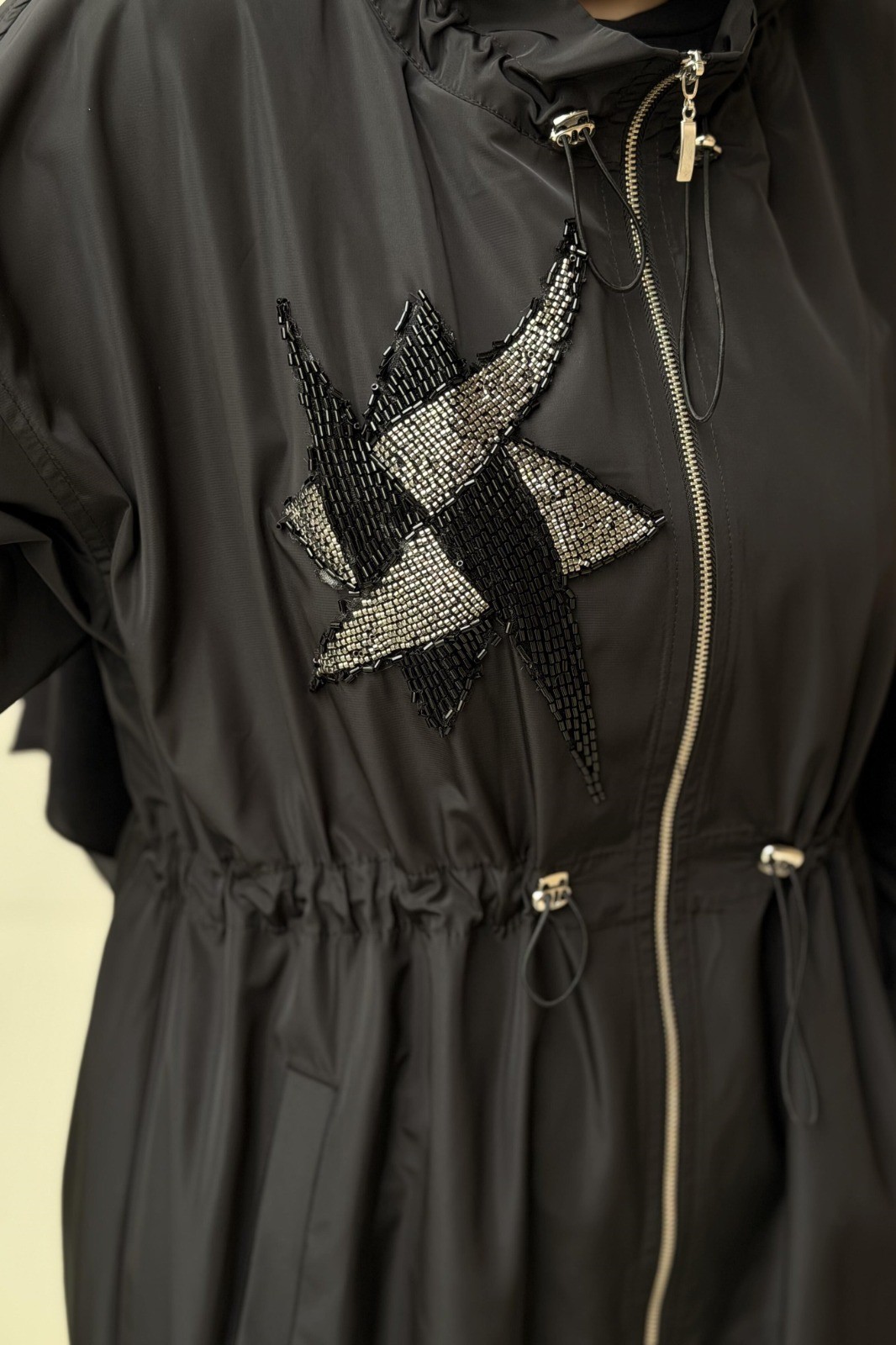 Dik Stoper Yaka Düşük Kol Önden Fermuarlı Cepli Rahat Kalıp