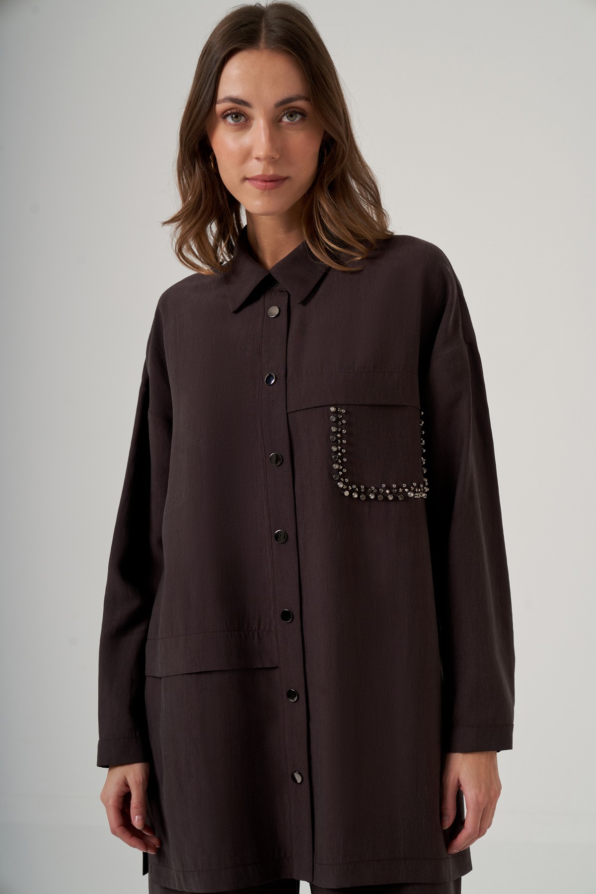 Kap Gömlek Yaka Takma Kol Önden Fermurlı Bel Büzgülü Rahat Kalıp
