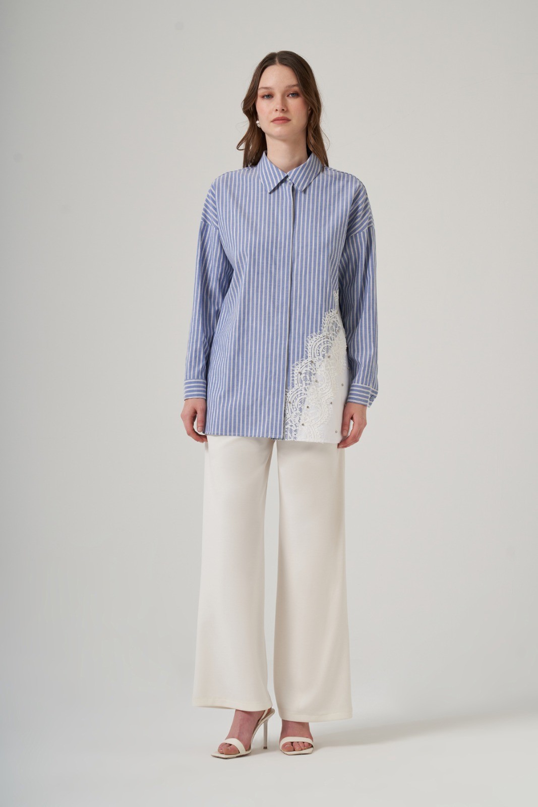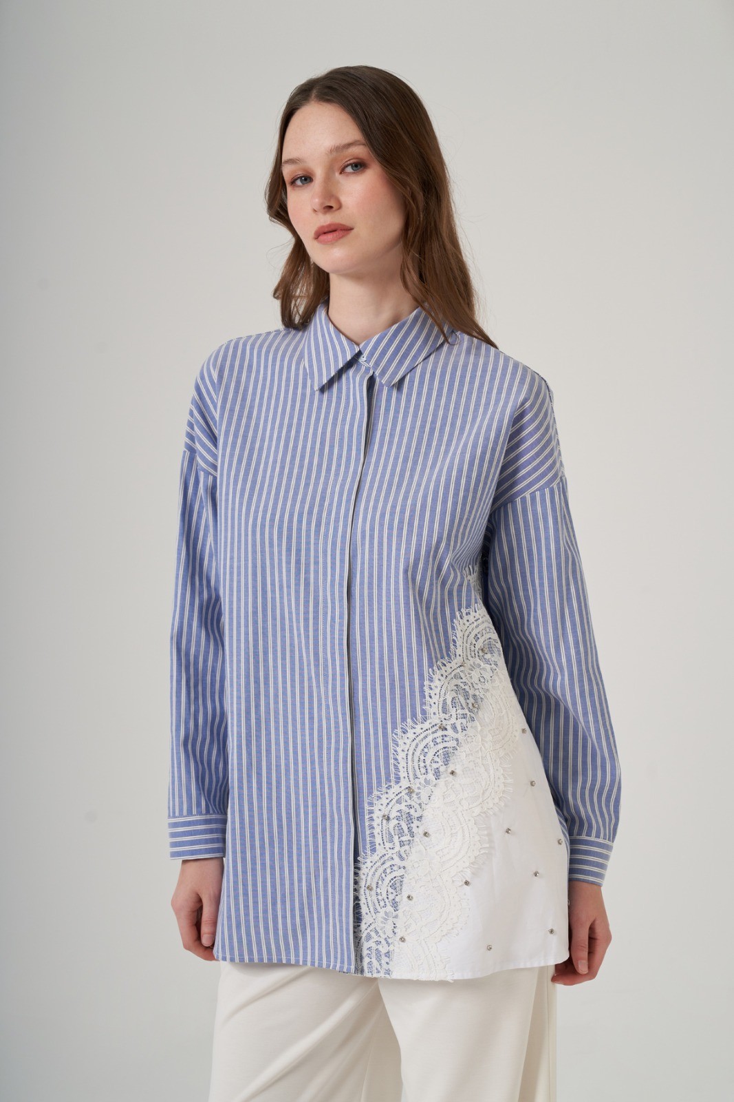 Nuss 3007 Dantel Detay Düğmeli Gömlek