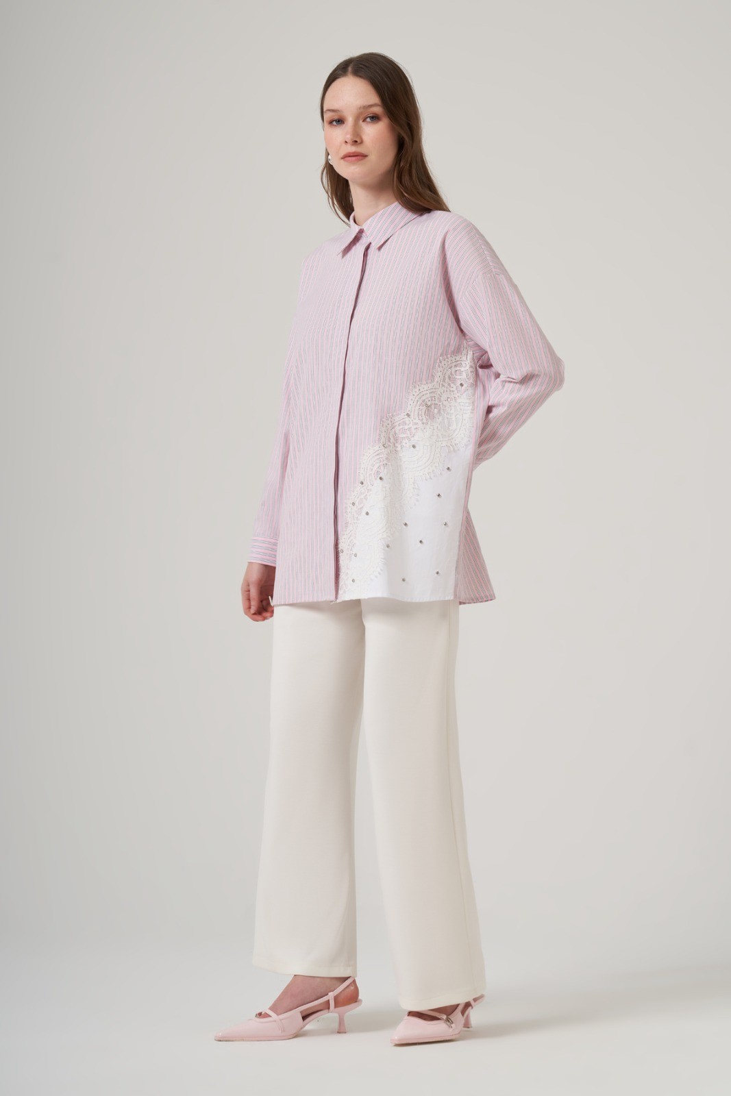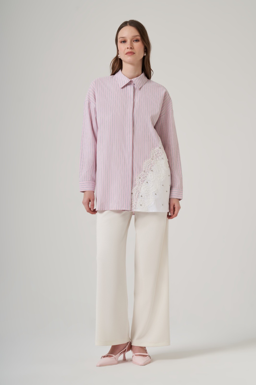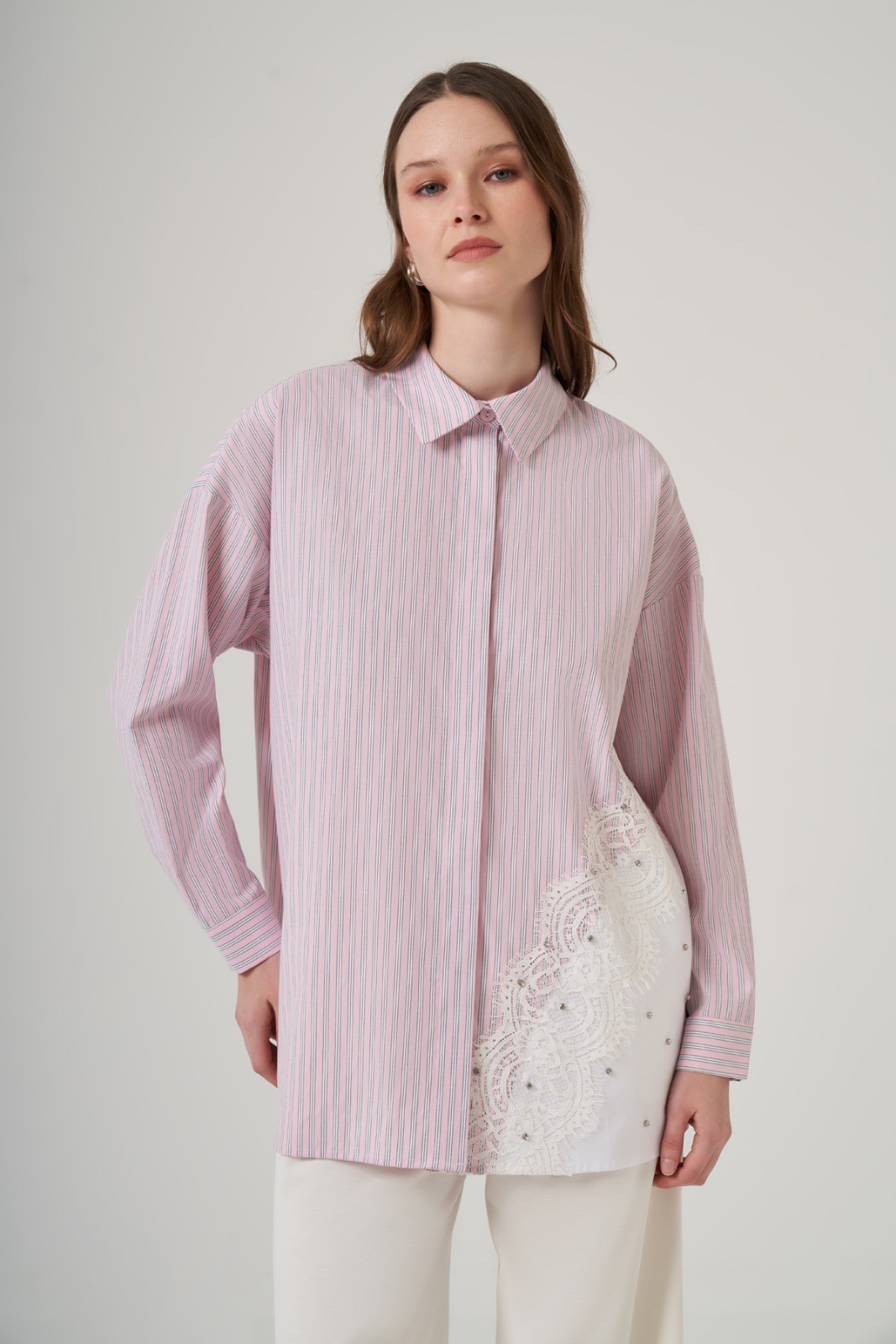 Nuss 3007 Dantel Detay Düğmeli Gömlek